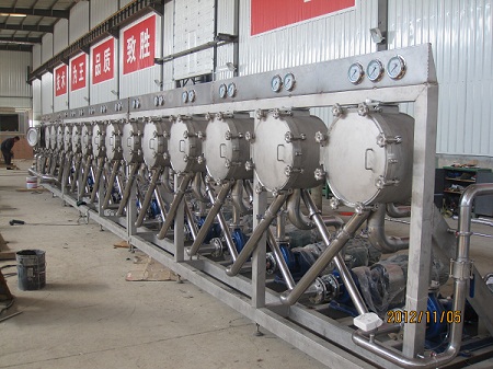 我公司承攬的河北富鑫淀粉有限公司的馬鈴薯淀粉成套生產(chǎn)線(xiàn)分別于2012年9月2日和9月24發(fā)貨。 此次購買(mǎi)的馬鈴薯淀粉加工設備包含了每小時(shí)處理35噸鮮薯的鼠籠式洗薯機、超級銼磨機,淀粉篩,U型喂料螺旋,高效離心篩,濃縮(洗滌)旋流站,真空脫水機以及氣流干燥機組等包括了清洗,銼磨,提取和干燥幾個(gè)單元的所有設備。